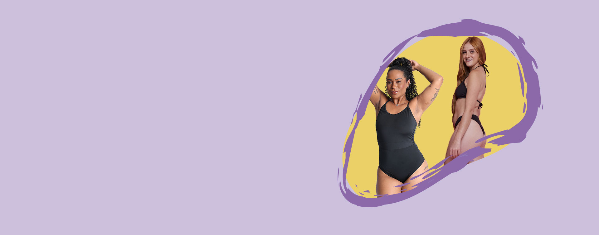 Bem-vindas à revolução em liberdade menstrual com calcinha biquíni absorvente e maiô absorvente Violeta Cup